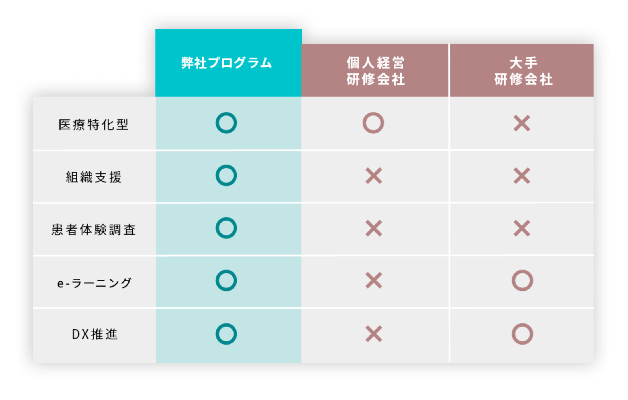 これまでの研修とは違い、当院が抱える根本的な接遇問題に目を向け、その問題を解決するためのオリジナルな改善プログラムを作成いただけたのでお願いすることにしました。